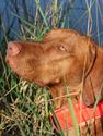 Handsome and Handy too, Baron has been for us the epitome of what a truly dual Vizsla should be. With a work ethic that will not quit, and attitude to burn, he has been a joy to train and handle, and a blast to hunt over. In addition to excelling in NAVHDA (and giving us countless memories hunting) Baron earned his AKC show title in 2013 in 3 consecutive shows, and in his last show earned an additional 6 points towards a Grand Champion. William Gurney of Vihar Vizslas was instrumental in helping us obtain this fine dog. Click here for health records, test records, AKC CH title, more pictures.